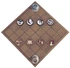 Dans Top Cap, chaque joueur commence avec quatre capsules de sa couleur sur une grille 6x6 ; le coin de la grille le plus proche de lui représente une bouteille de la couleur correspondante. A chaque tour, choisissez l'une de vos capsules, comptez le nombre de capsules de l'une ou l'autre couleur qui se trouvent sur des cases adjacentes (orthogonales ou diagonales), puis déplacez cette capsule d'exactement autant de cases en ligne droite, soit en diagonale, soit en orthogonale. Vous ne pouvez pas quitter le plateau, sauter ou atterrir sur une capsule, ni atterrir sur votre bouteille. Si vous déplacez l'un de vos bouchons sur la bouteille de votre adversaire, vous gagnez. Si vous ne pouvez pas déplacer légalement l'un de vos bouchons pendant votre tour, vous perdez.